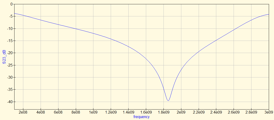 This looks good. We have a 3dB split at 1.5GHz with only about 0.5dB undesired loss over our operating range.